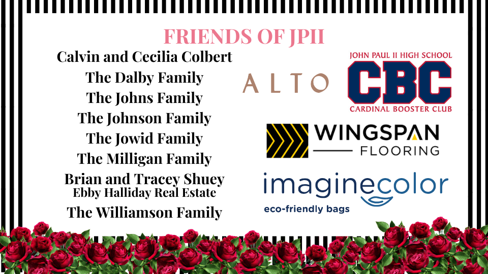 For questions: contact our Director of Events and Alumni Relations, Nicole Miller, at nicolemiller@johnpauliihs.org or 469-229-5166.