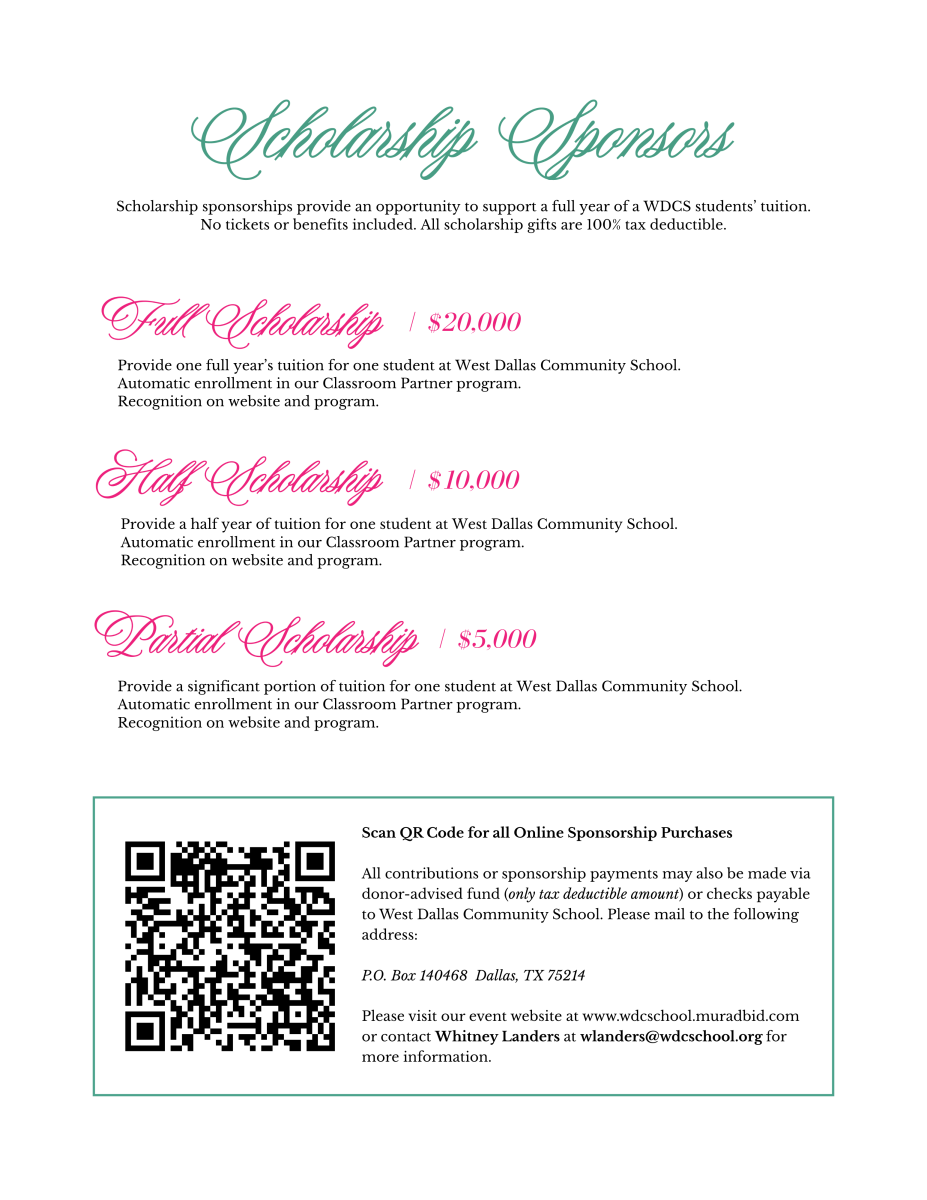 If you cannot attend the event and would like to make a donation to support student scholarships at WDCS, you can fill out this form below. We are grateful for the generosity of our faithful donors!